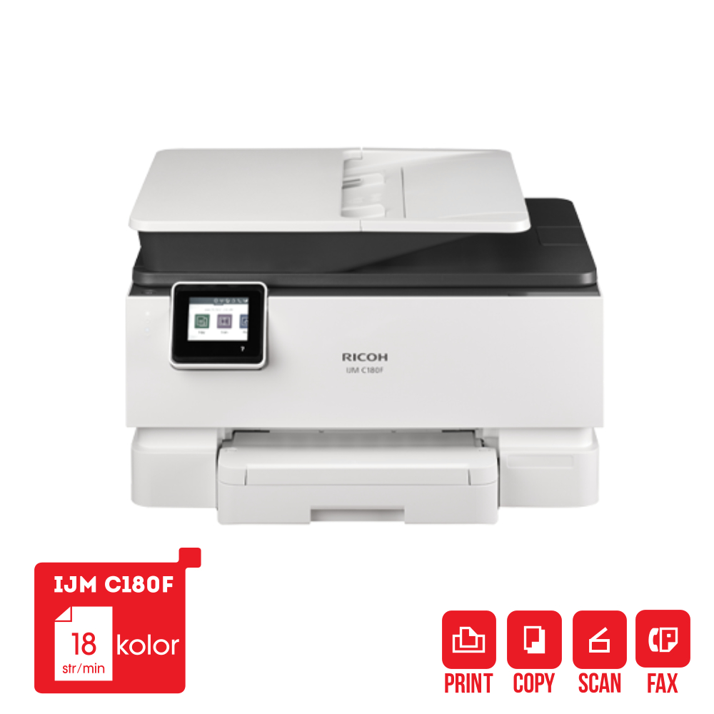 Designed for forward-thinking companies, the RICOH IJM C180F delivers a seamless office experience to your employee’s doorstep with high-quality color and black-and-white printing, scanning, copying and faxing. Energy-efficient and WiFi-ready, this compact MFP includes essential security and an easy-to-use app. Plus, it’s backed by Ricoh’s first-class service team. IT departments stay on task with at-home work supported and data safely secured.